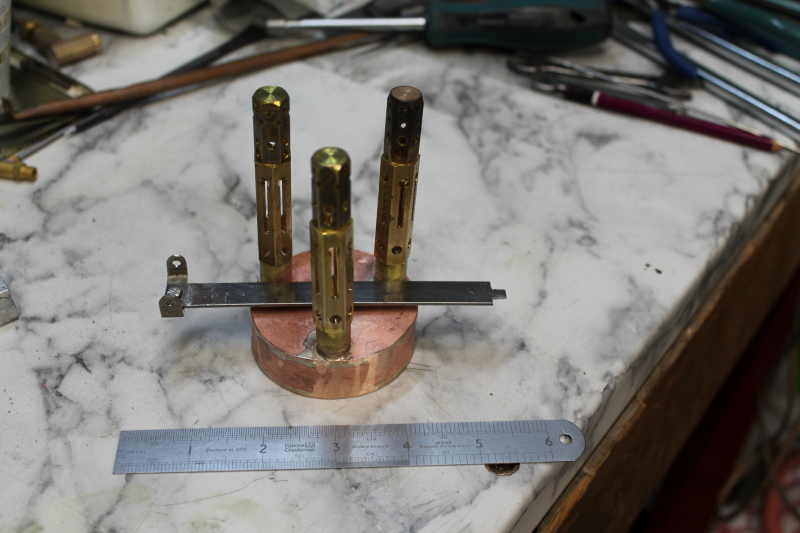 So I set to and built a 'ring of 3' burner which was more suitable for a vertical boiler.