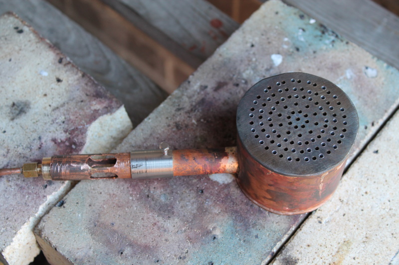 Several iterations of gas burner followed until I arrived at one which I think will work.