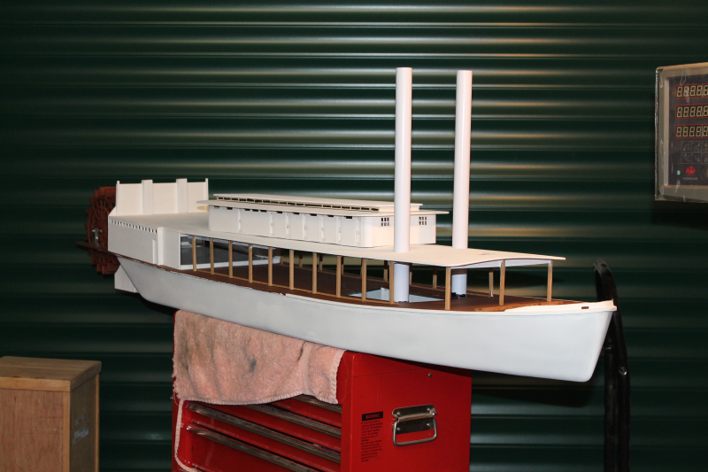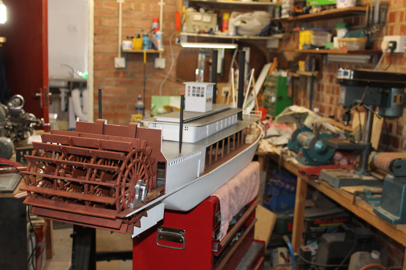 About 40 years ago I bought a paddlesteamer hull, bits of decks, a Stuart S50 mill engine and Stuart boiler with the intention of continuing the build of a double sized Vic Smeed designed "St Louis Belle". Well, it never happened. I sold the engine and boiler when I was a bit hard up and the hull and other parts languished on top of a wardrobe gathering dust.