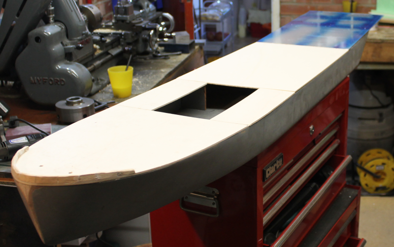 Well. I've been busy again. I was a bit concerned about displacement and how much freeboard it should have, so I did a google search and found a site which calculated displacement. I put in the requested figures and It told me that for 0.5 inch freeboard the all up weight should be about 47 pounds! I have to say that I was a little sceptic. I loaded up with lumps of steel ( got plenty of that, bit short on lead! ) until I got to 35 pounds and then took it to the pond.