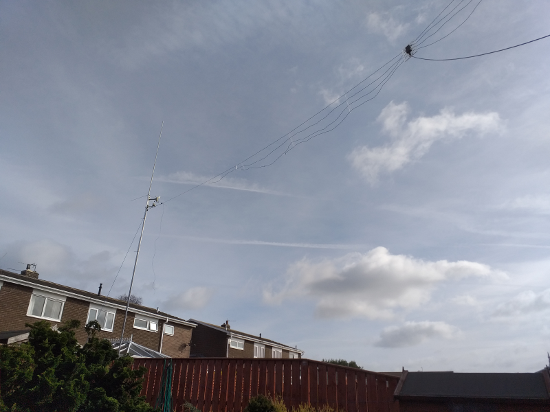 At this time I was using a 2metre / 70 centimetre collinear and a nest of 4 paralleled dipoles for the 10, 15,20 and 40 metre bands. I also strung up a wire around the periphery of my garden, fed at the centre of one leg and split at the opposite point. This, rather remarkably, turned out to be resonant on the 80 metre band.