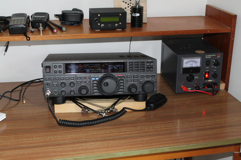 The ham radio corner with the FT 950 and immediately above that, an arduino based power / swr meter.