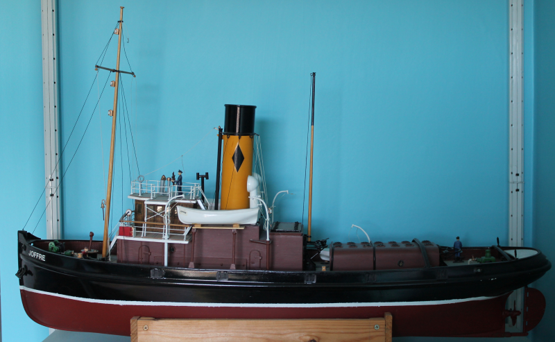 This model was built from a Caldercraft kit about 20 years ago. It's one of many tugs I have built over the years. It is radio controlled using 2 channels, direction and speed.
